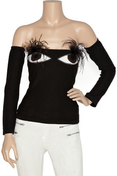 It’s important to me that you know that this exists, this strapless cashmere tube top with matching arm warmers from Sonia Rykiel, which at one point in its life was priced at $770 and is now a much more reasonable — and yet still not remotely reasonable at all — $269.50. At The Outnet, if you’re the sort of person who sees eye-boobs and underarm-adjacent feather tufts and is like “Oh hell yes.”